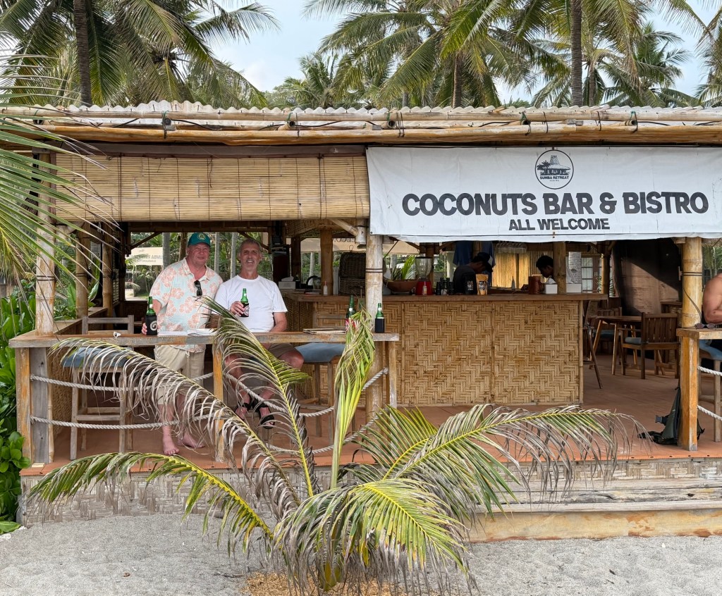 Sumba has been fabulous and I’ve swum every day. I feel like I’m half seawater and half Bintang. There is nothing like sea breezes to work up a thirst and it has been to leave the beach bars to return to our camp for dinner. Not sure if I’ll return, but I’m grateful for the Pub Wow experience and sharing birthday beers with old mates at Coconuts.