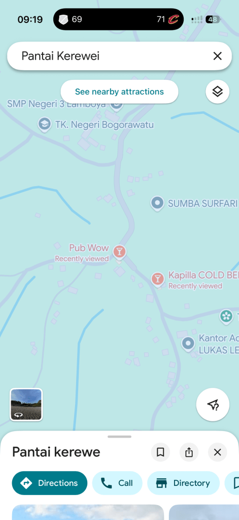I’m not a surfer – I can body surf and have been quite happy bobbing around for a couple of hours, but not twice a day. I’ve swum in some beautiful spots that can only be reached by boat – but I’ve been fortunate to have a car for afternoon excursions. As part of my planning, I’ve using google maps and came across the location “Pub Wow”.