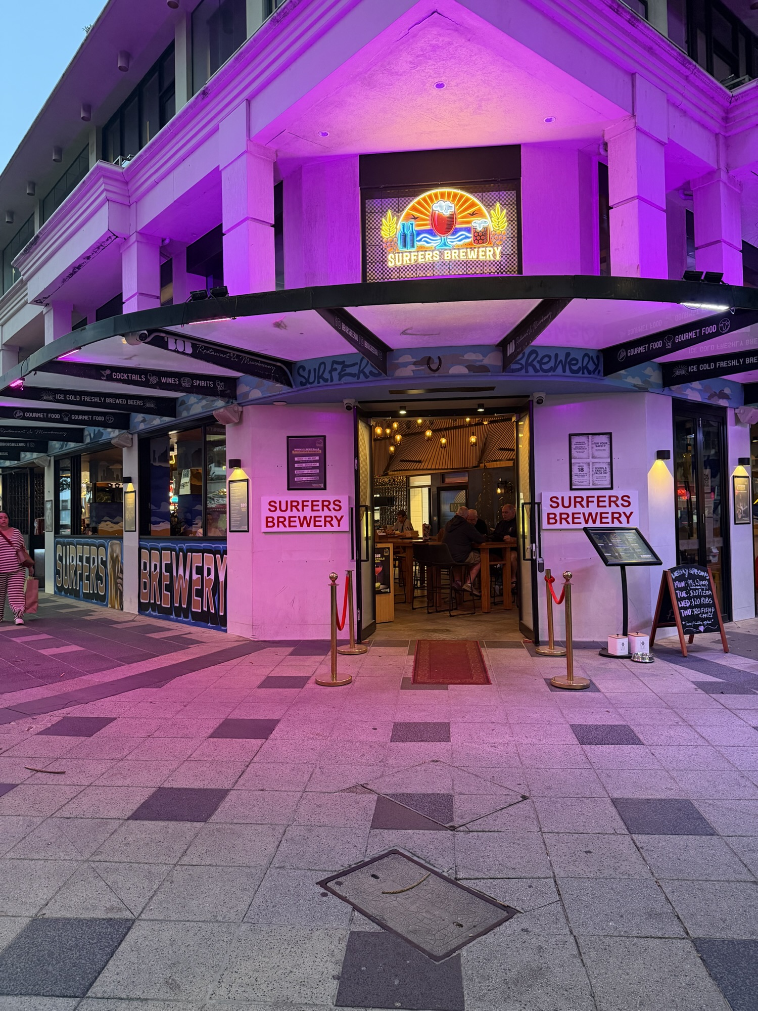 BOBs is no longer and it has been renamed Surfers Brewery. It is an odd rebrand. They’ve painted new murals on the walls inside. I like the homage to the meter maids of yester year, but the Shane Warne painting is not great.