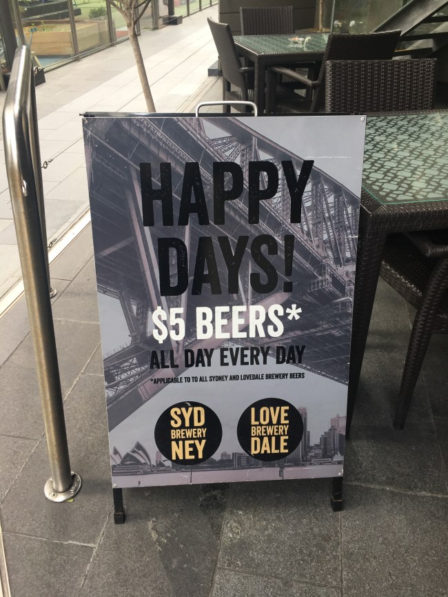 Out the back of the collosus that is Sydney’s World Square complex is a place called The Cidery. It’s facade is modest but hides a sleekly appointed bar. The attraction for beer lovers is the $5 beers “All day, every …